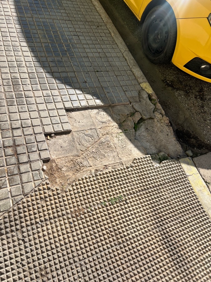 Acerado roto que lleva más de 3 años así, tengo una niña pequeña y no es la primera vez que se cae ahí. Peligroso para niños y mayores ya que es casi toda la acera la que está mal