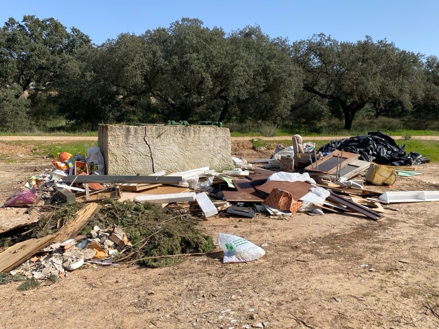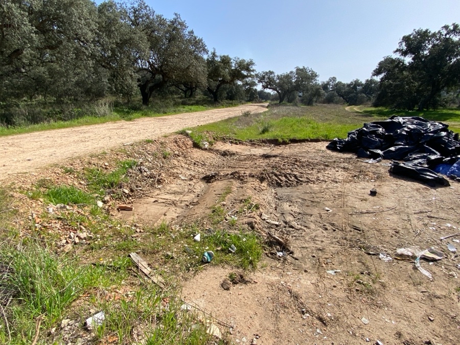 Escombros, plásticos y demás basuras en parque municipal Tres Arroyos. Primer camino a la derecha en Km 5 dirección La Corte.los contenedores vacíos y todo tirado por el parque. Cada vez qie retiran los escombros se llevan parte del camino.