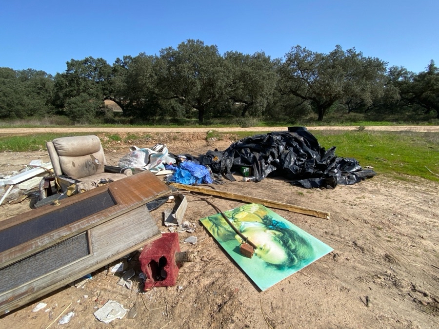 Escombros, plásticos y demás basuras en parque municipal Tres Arroyos. Primer camino a la derecha en Km 5 dirección La Corte.los contenedores vacíos y todo tirado por el parque. Cada vez qie retiran los escombros se llevan parte del camino.