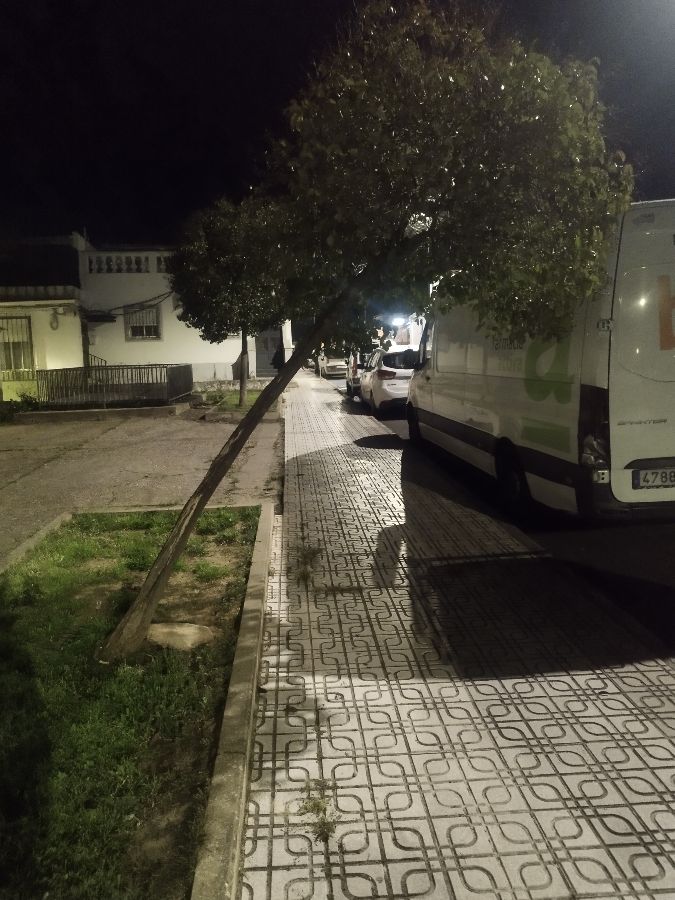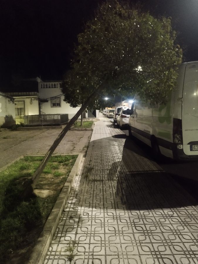 ESTE ARBOL ESTA SUJETO POR UNA PIEDRA Q PUSO UN VECINO,SE VA A CAER ENCIMA DE UN COCHE O UNA PERSONA.JUSTO EN LA ENTRADA DE LA AVENIDA DEL SOL EN BADAJOZ.SE PUEDE ARREGLAR Y QUE ESE ARBOL SIGA VIVO...PERO AQUI PASAMOS DE TODO.