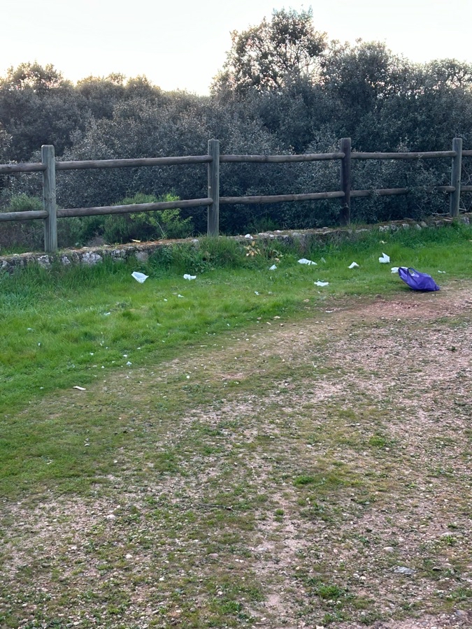 Está lleno de basura y no ha llegado la primavera. Los miradores cerca de la charca están llenos de restos de comidas y escombros.
