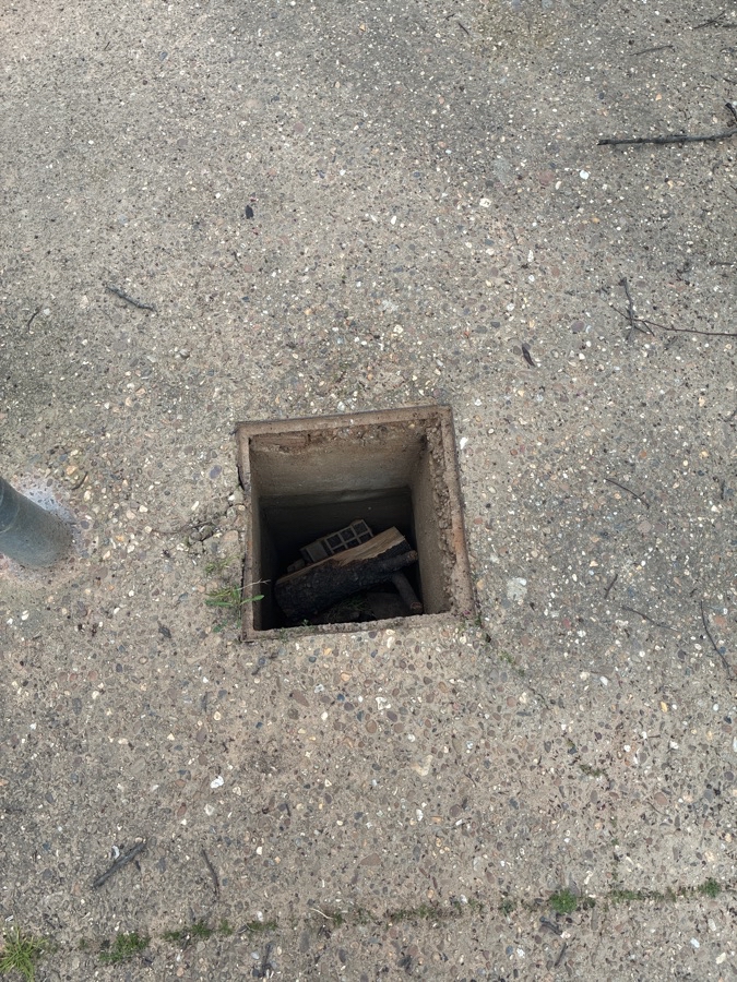 Se ha roto una de las tapas del suelo y hay un agujero de un metro de profundidad.