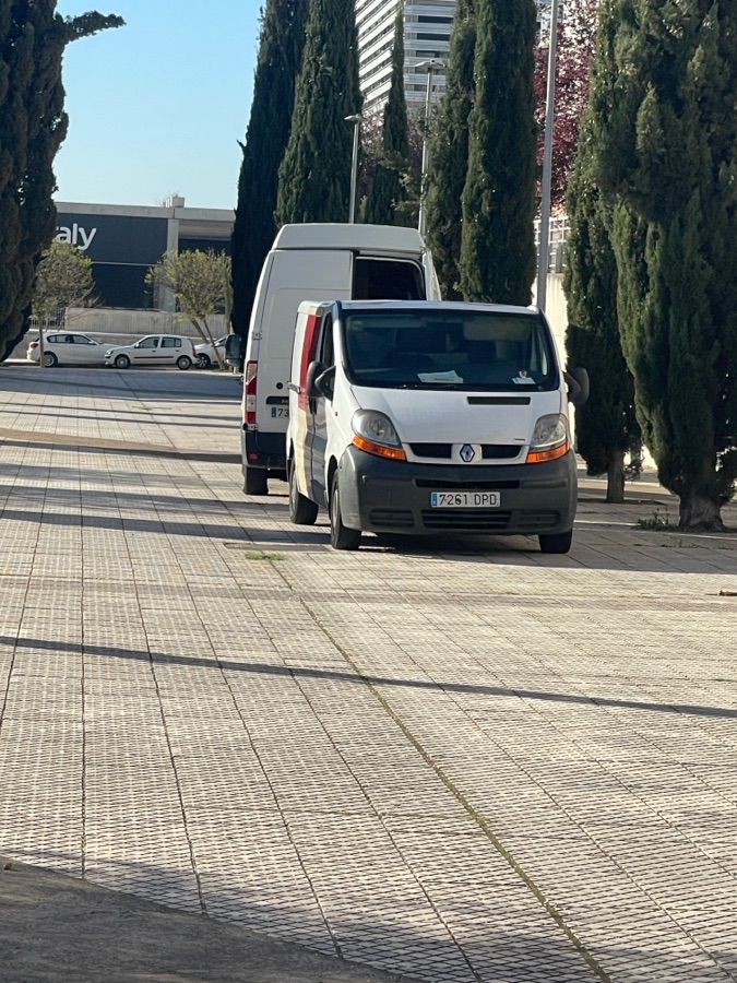 En Plaza San José Manyanet, Pepe Reyes a diario hay vehículos circulando por las plazas , o aparcados, esto es legal. Pero últimamente hacen traspasos de mercancías los repartidores