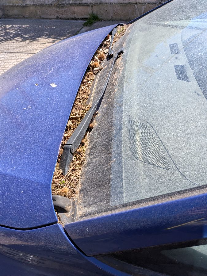 Este coche lo trajo la grúa de la Policía Local el día 11/02 y no se ha movido. Le está saliendo musgo por las ventanas. Está ubicado en los aparcamientos de Paseo Fluvial 10, donde también hay una puerta de entrada al colegio público Santa Marina. Está quitando aparcamiento a los vecinos de esa zona