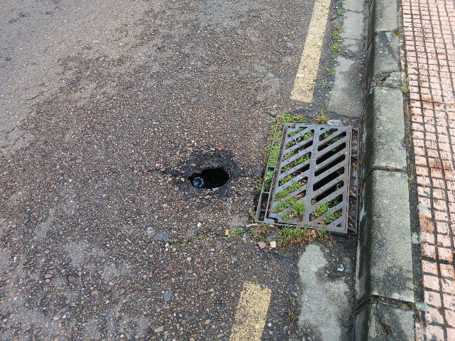 PELIGRO de indimiento de la calzada, mucho paso de vehiculos.