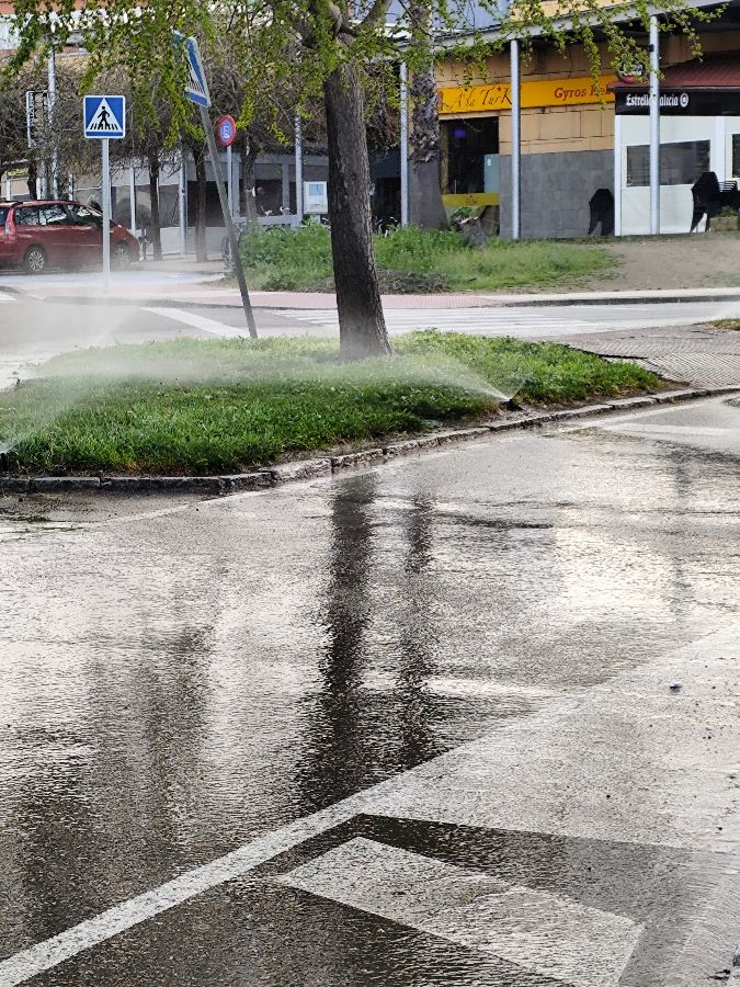 Los aspersores están soltando agua todo el día y no es la primera vez que pasa, entre el centro comercial la plaza y el colegio