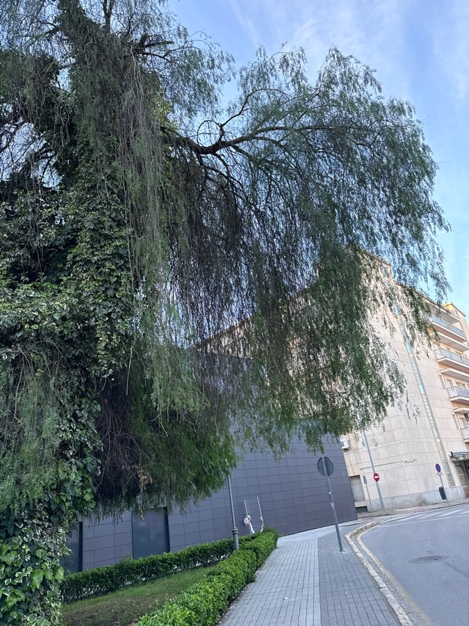 Esta rama de gran tamaño caerá sobre la acera con el próximo vendaval. Ya cayó una similar hace unos meses