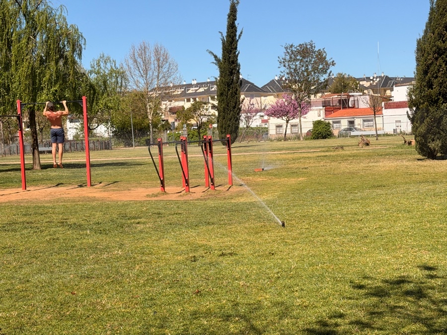 Es increíble que los aspersores del césped se enciendan en la mañana a horas en las que las personas hacemos uso de las instalaciones (sumamente deterioradas y con falta de mantenimiento). Hay temporizadores y la mejor hora para regar es la noche.