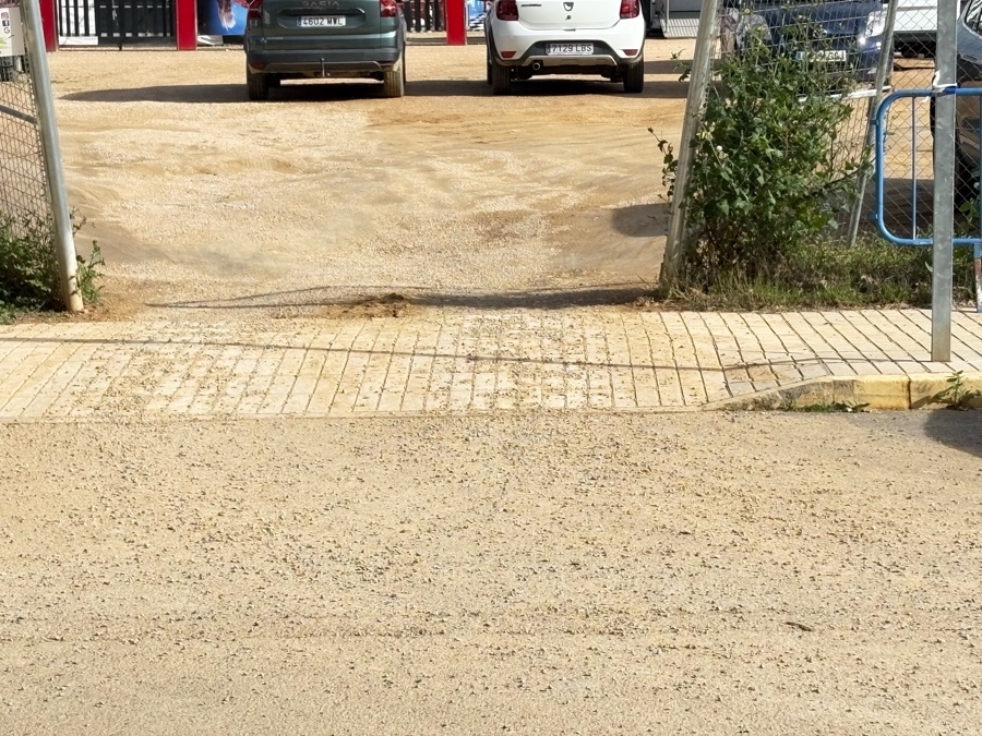 El acceso de coches para el aparcamientos en tierra en la parcela municipal es prácticamente inaccesible ya que los coches normales dan en los bajos del coche. Hay que reparar el acceso con aportación de tierras o mejor, hormigonandolo.
