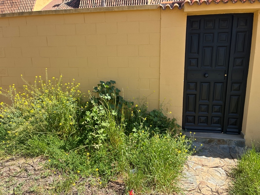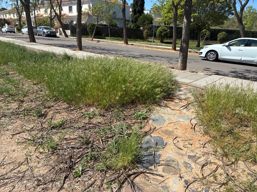 Hierbas acumuladas en ceras de viviendas para desbrozar