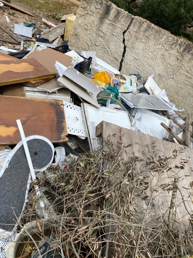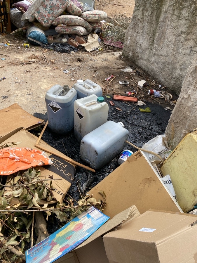 km5 a la derecha de la carretera de la corte en el parque de tres Arroyos. Hay aceite de coche en garrafas grandes más poda y escombros. Esto es constantemente. Una vergüenza. Y los contenedores vacíos