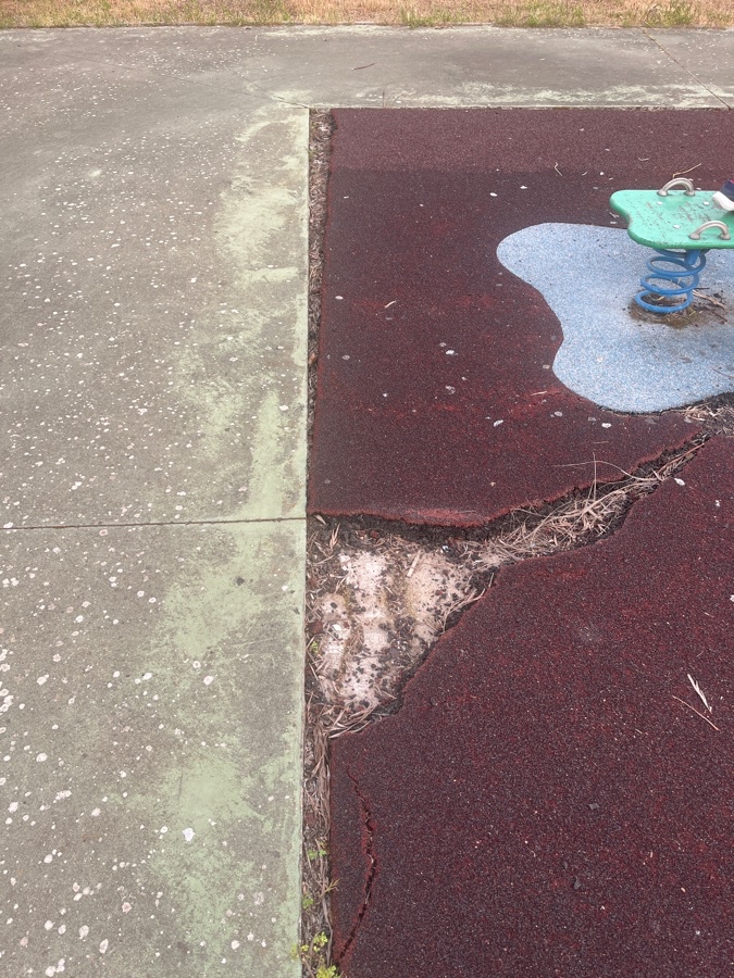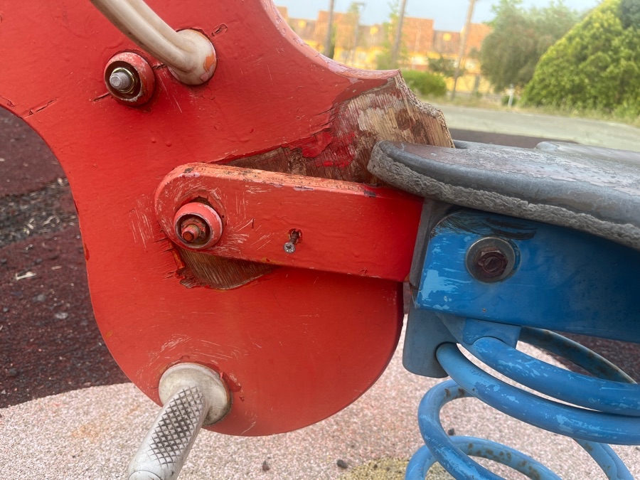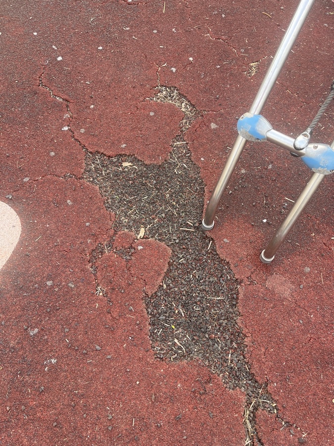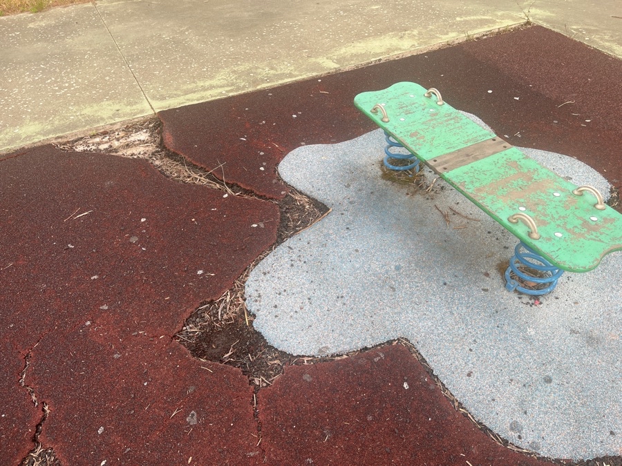 Tanto suelos de gomas y columpios de parque infantil en estado lamentables