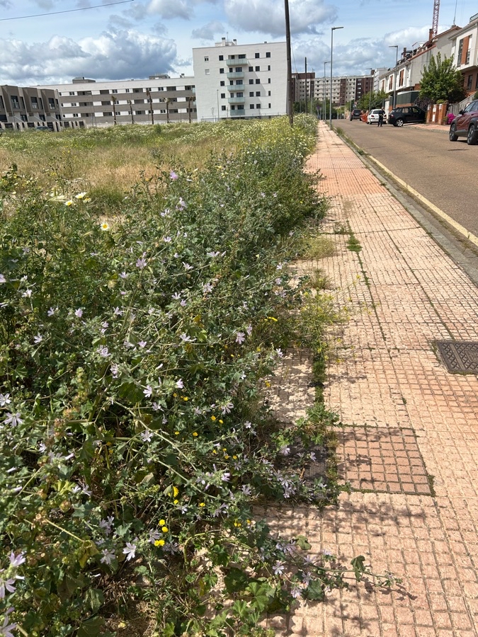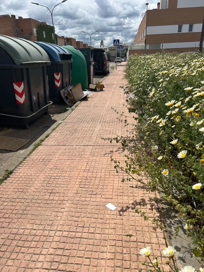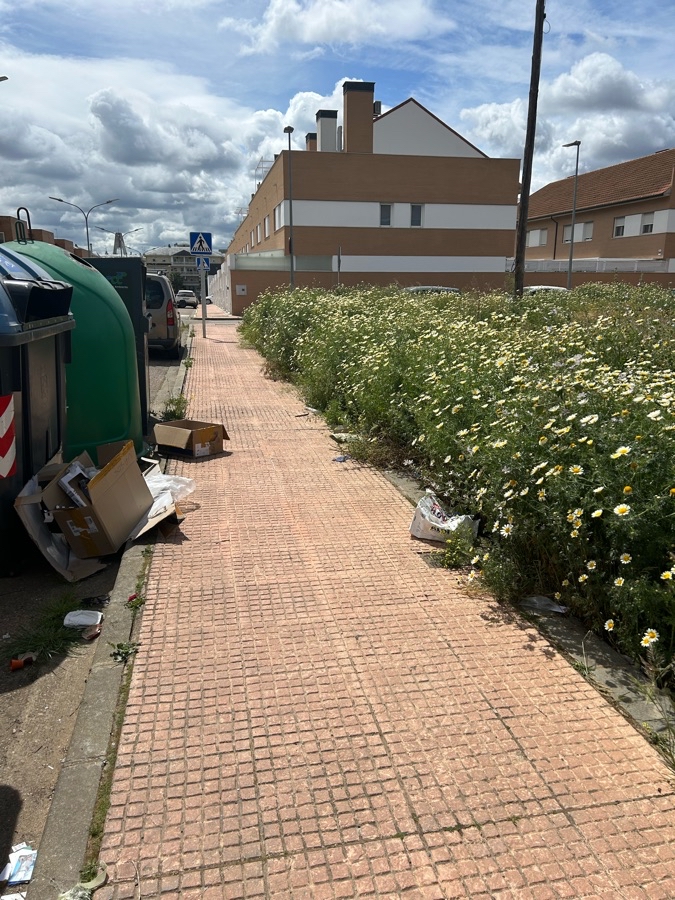 No limpian el solar y las plantas caen al acerado. Los alrededores de los contenedores están con más basura que los contenedores.
