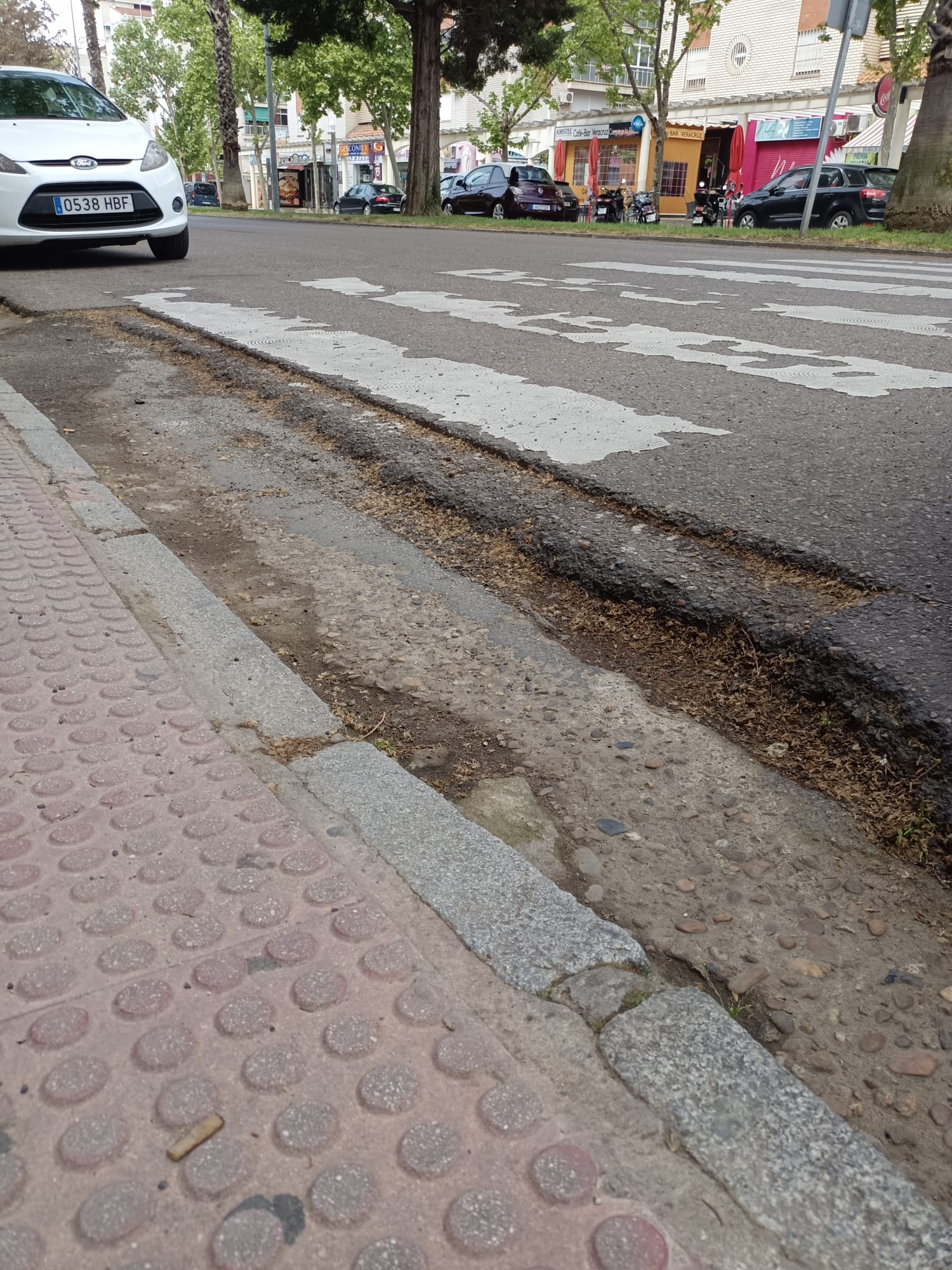 Hay escalones entre el paso de cebra y la acera que son un peligro, sobre todo para la gente mayor, e impiden el tránsito normal de sillas de ruedas, carritos de la compra o andadores.