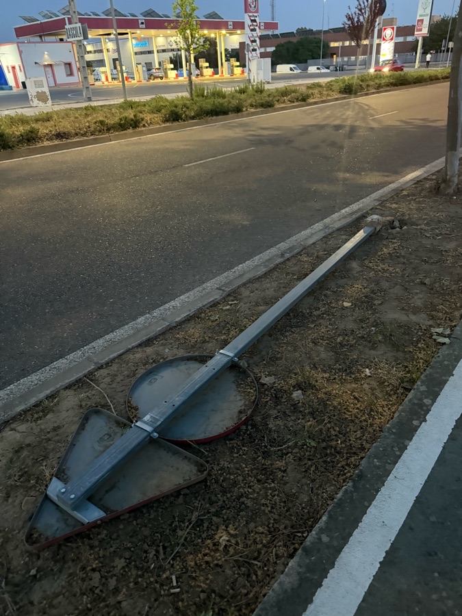 Señal completamente caída, frente a los lavaderos situados en Federico Mayor Zaragoza