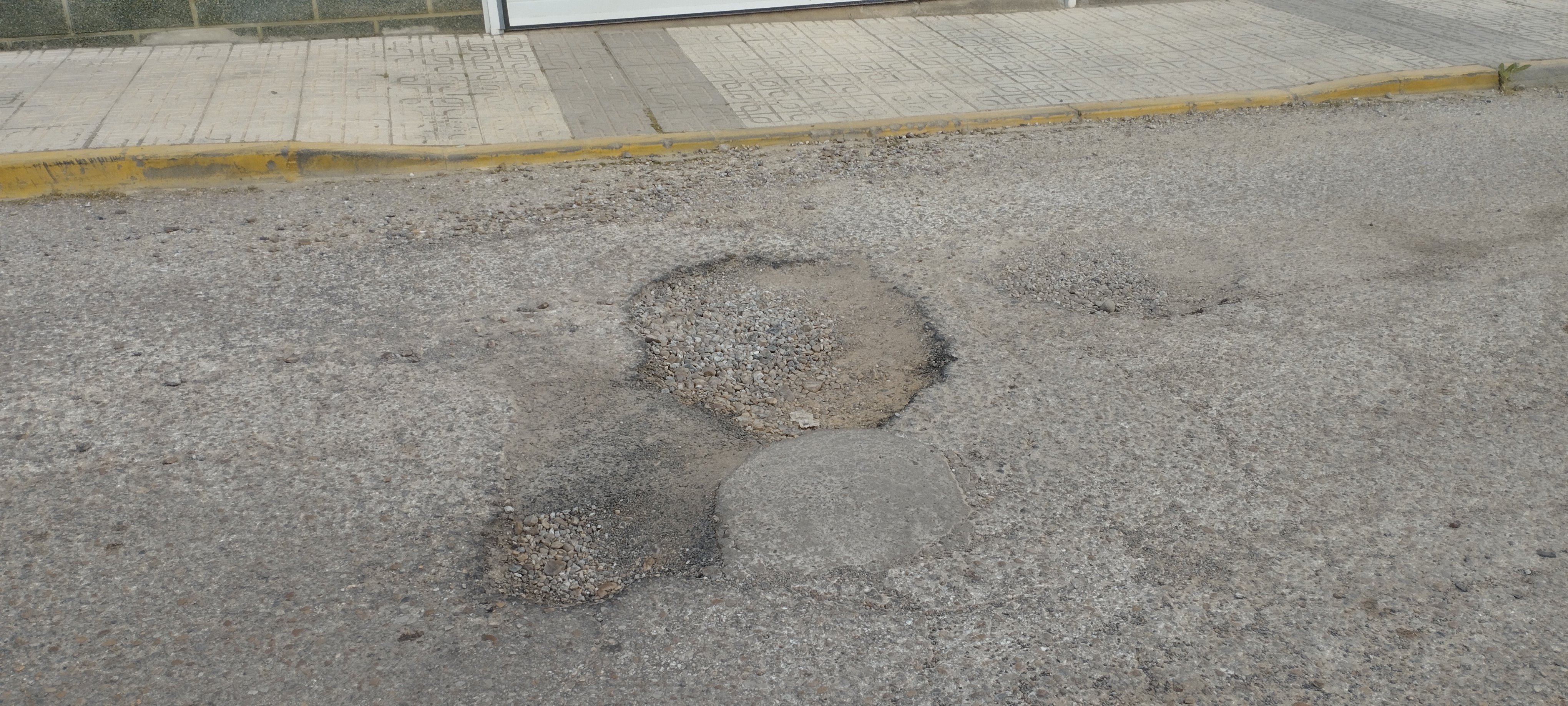 Bache en mitad de la calle que ya no puede esquivarse por ningún lado por tener la acera a la izquierda y contenedores a la derecha.