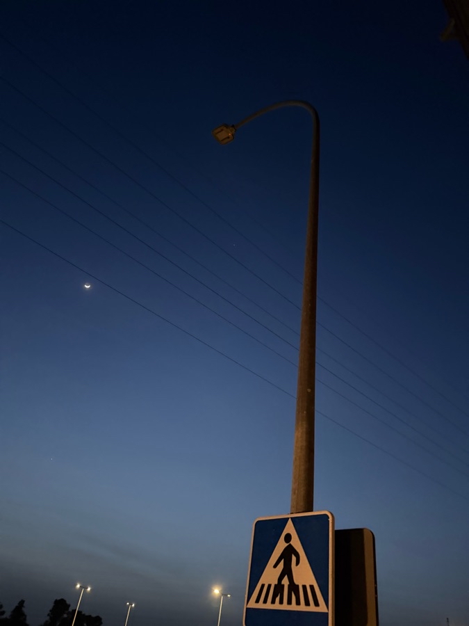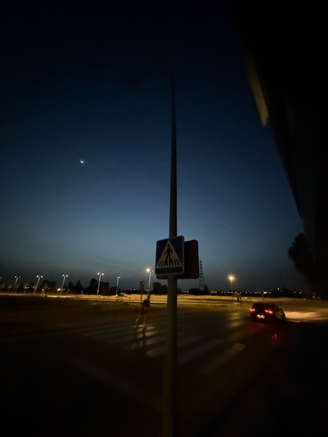 Paso de cebra muy oscuro y zona poco iluminada por lámpara fundida