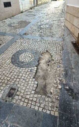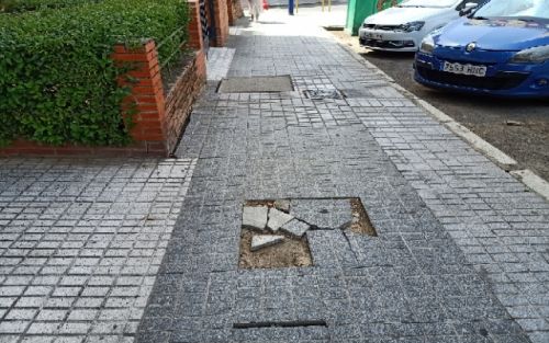 baldosas rotas Desperfectos en pavimento de calzada y/o acerado