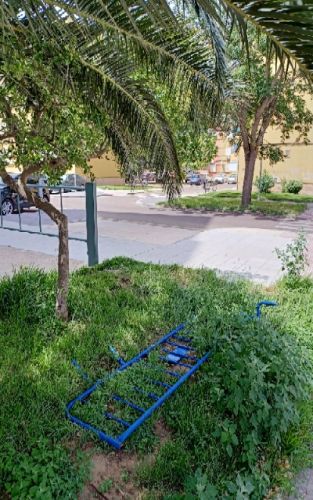 valla tirada en zona verde Existencia de vallas en la vía pública