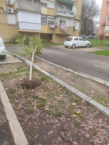 Árbol recién plantado derribado por vehículo Incidencias en vegetación