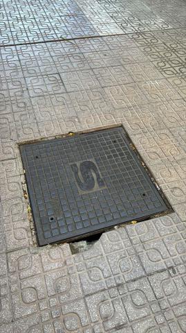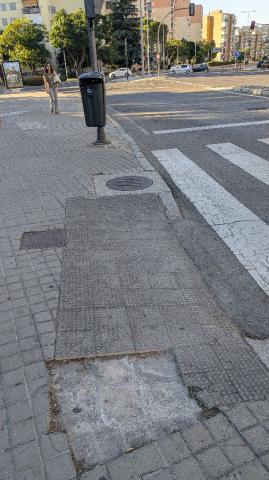 Tapa de luz en acera que se unde. Desperfectos en pavimento de calzada y/o acerado