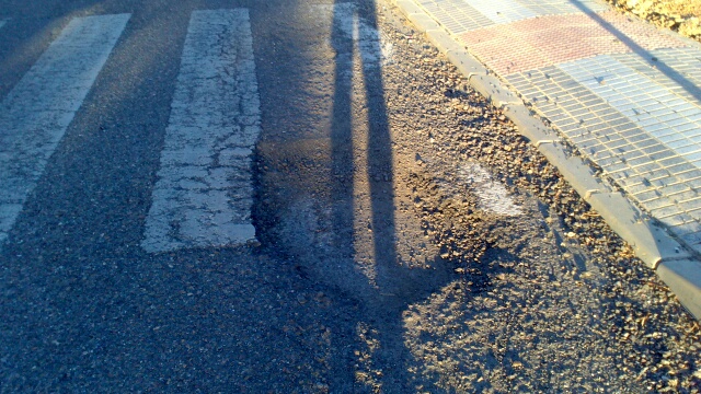 Gran bache en la calle Virgen de Guadalupe en Villafranco del Guadiana, en el paso de cebra.