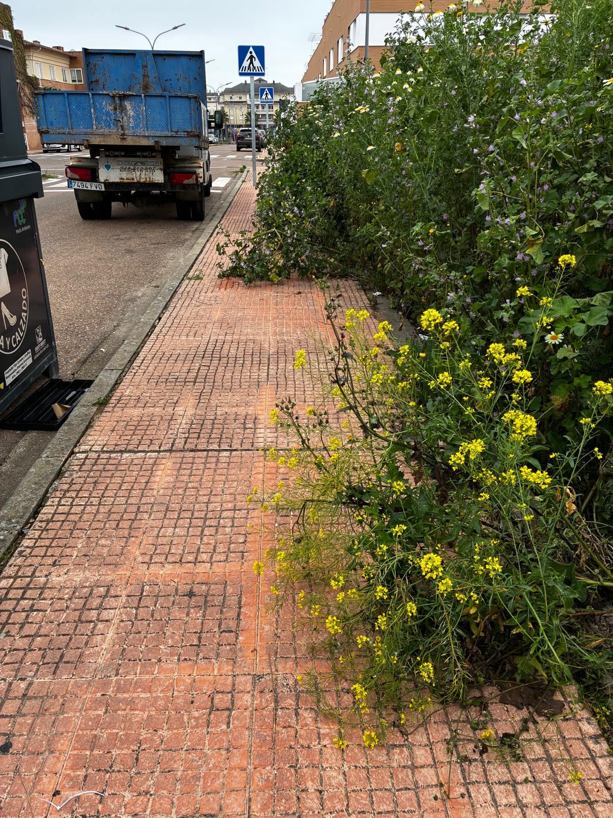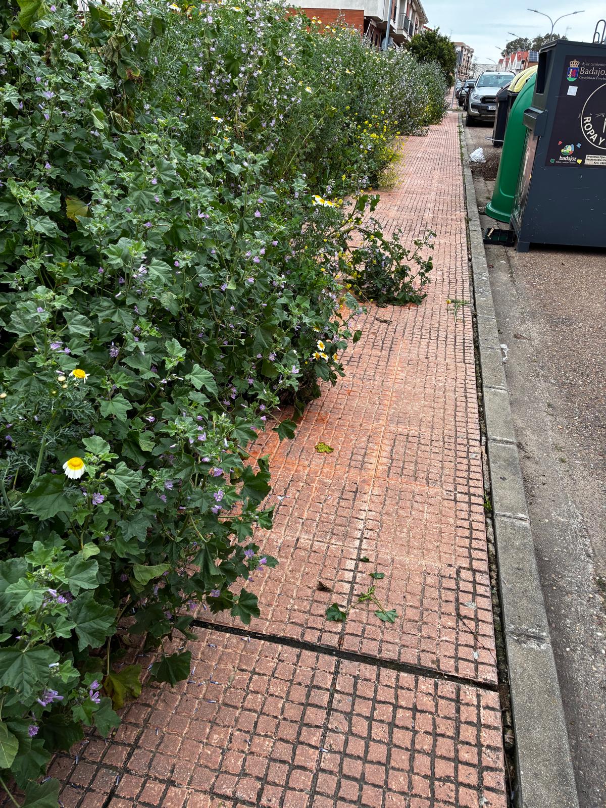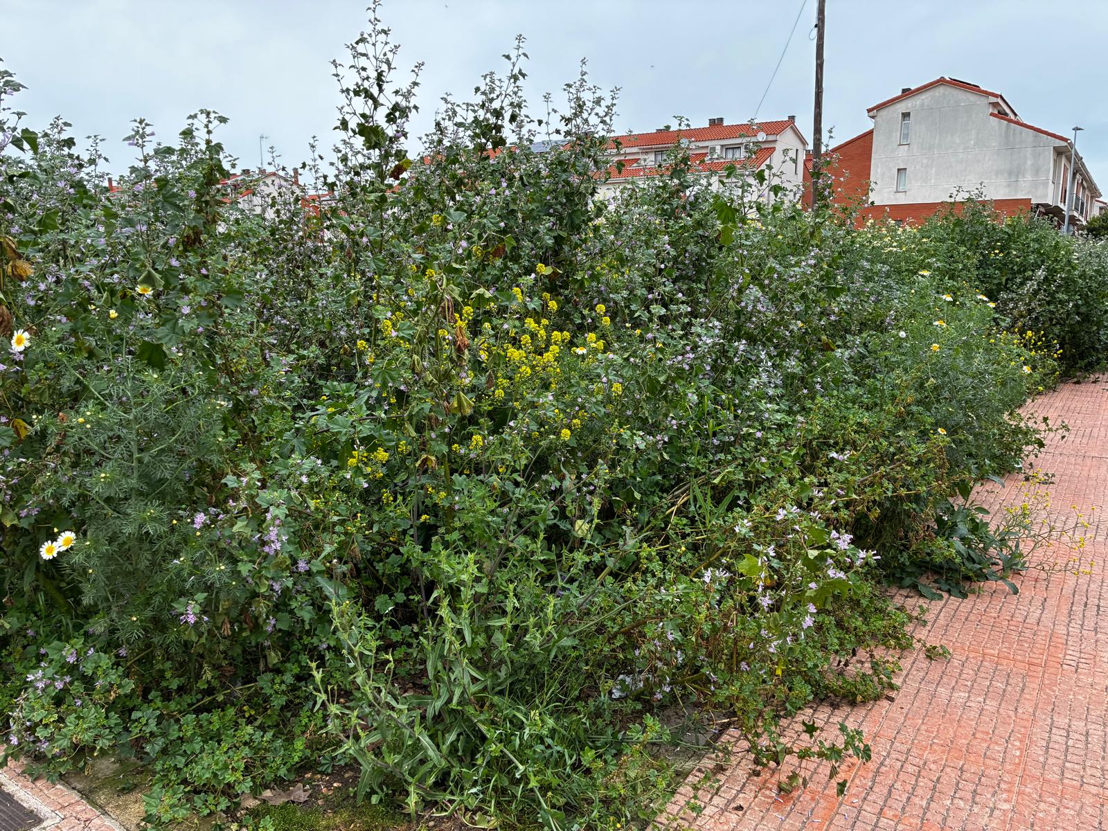 La vegetación invade el acerado impidiendo pasar por ella. Como viene siendo habitual todos los años este solar es una selva.