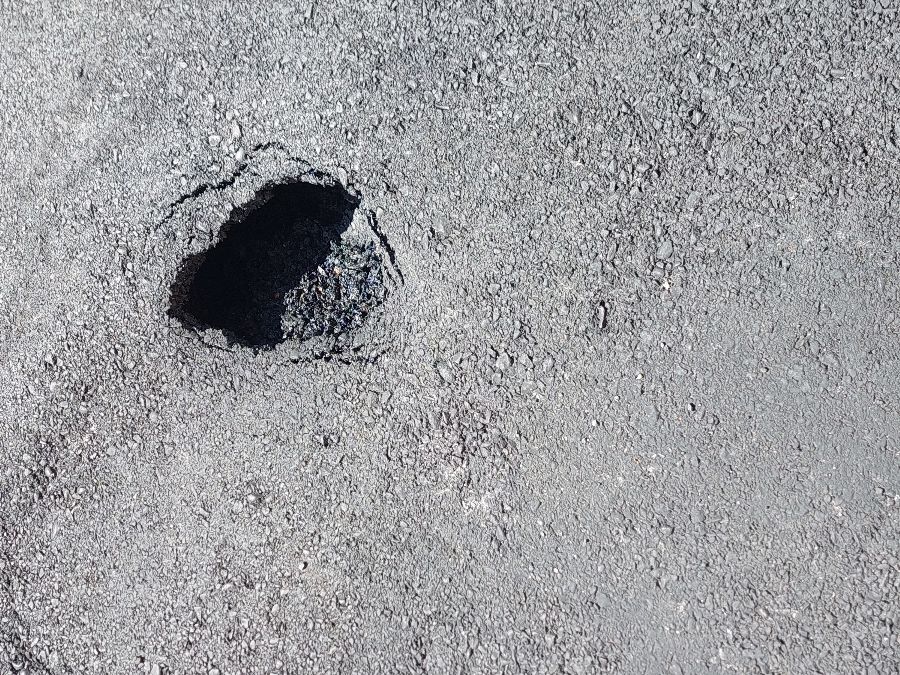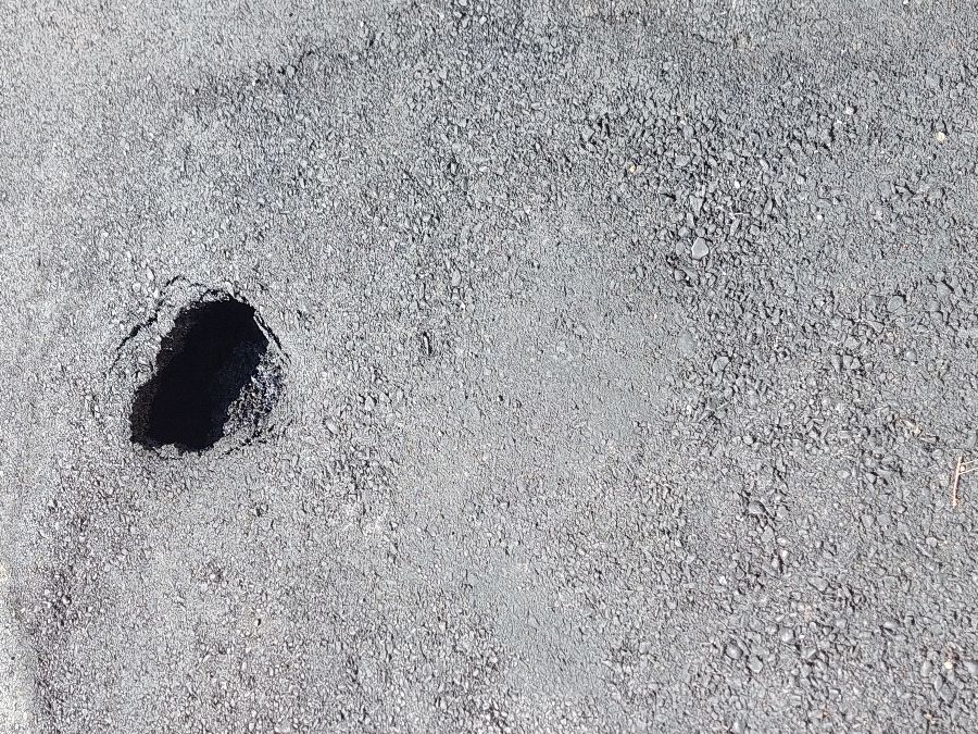 Hay un agujero en la calzada que fue asfaltada tan solo hace unos meses