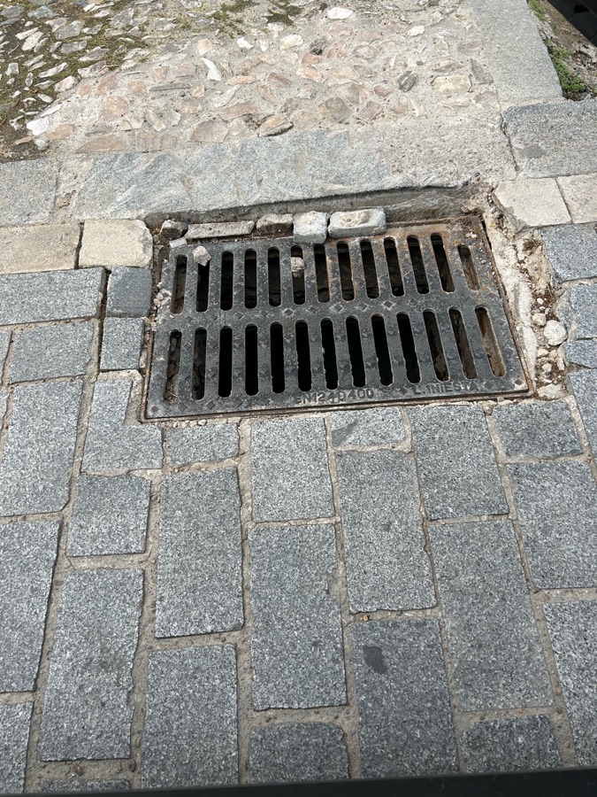 Junto a Puerta de Palmas en un lateral está el alcantarillado destrozado