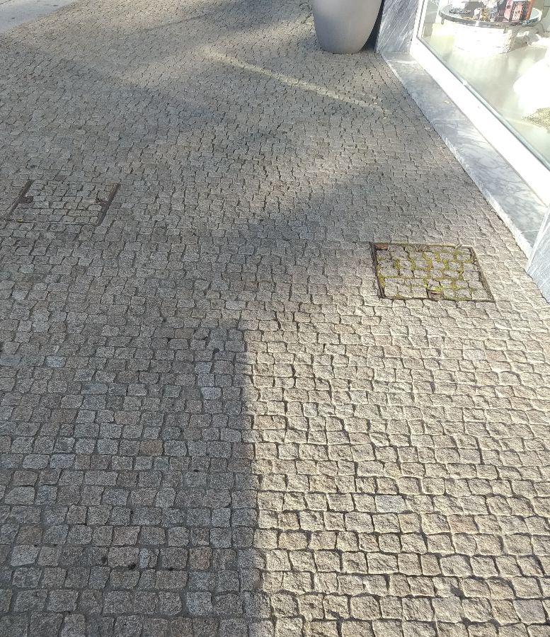 El pavimentado de la plataforma del Centro es un absoluto desastre. En algunos tramos se ha intervenido varias veces cometiendo los mismos errores. Me gustaría compartir con el concejal de urbanismo algunas fotos del pavimentado en Portugal, en este caso en Miranda do Douro. Algunos de los tramos tienen más de 20 años, y no se ha levantado ni una sola piedra, el éxito de esta técnica es, la utilización de piedra de granito de pequeña superficie y buen espesor, y no usar cemento, la base bien nivelada y apisonada, y poco más. Otras fotos muestran obras más recientes, 5 años, y a pesar del tránsito continuo, perdurarán, porque en Portugal, todavía se afanan para entregar trabajos bien hechos.