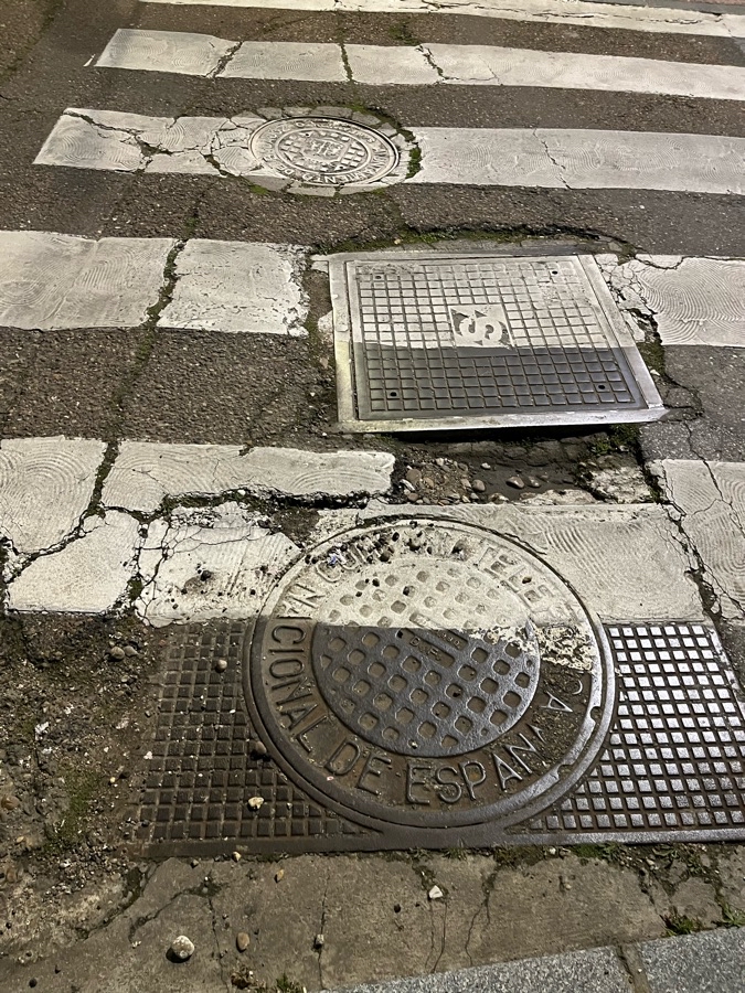 Agujero considerable en mitad de un paso de peatones, junto a una alcantarilla. Se encuentra al finalizar la Calle Bailén. De noche no se aprecia bien y puede ser peligroso para un viajante o alguna persona con baja visibilidad o movilidad.