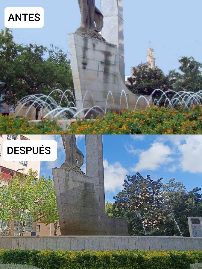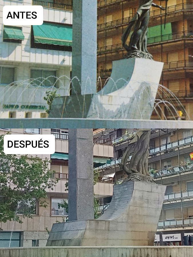 La Fuente de Colón, aunque funciona, sólo están operativos 4 o 5 chorros, y no están bien regulados. El sistema de iluminación de la fuente, y la estatua tampoco funciona (ni las luces de dentro del vaso de la fuente, ni los dos focos que están en el exterior iluminando la estatua). Adjunto fotografías del estado anterior de la fuente, con todos sus chorros operativos, y el estado actual. Solicito la puesta en funcionamiento del resto de chorros, y del sistema de iluminación. Muchas gracias de antemano.