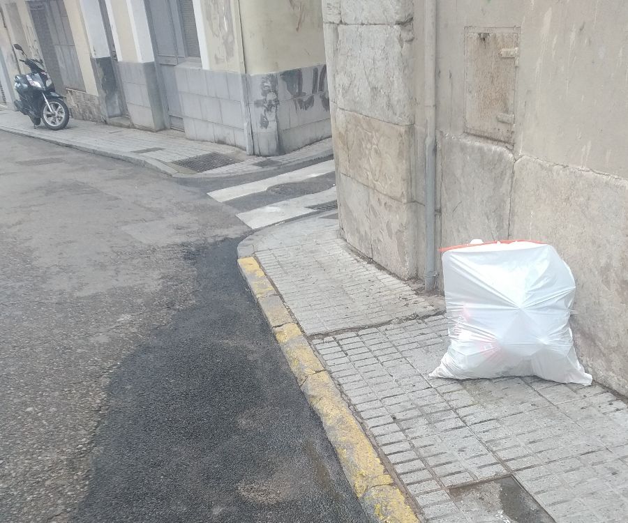 Cada día la bolsa en la acera, a cualquier hora, y la cámara de vídeo vigilancia a 3 m de distancia, ¿Será que la cámara no funciona, y entonces, es otro ejemplo de ineptitud del ayuntamiento? ¿o será que no hay alguien responsable de mirar las grabaciones? ... Un poco más abajo vehículo en la acera, está vez una motocicleta, otros días un coche, obstáculos para una persona con dificultades de movilidad. Contra los incívicos, sanciones, y contra la ineptitud de las autoridades, paciencia...