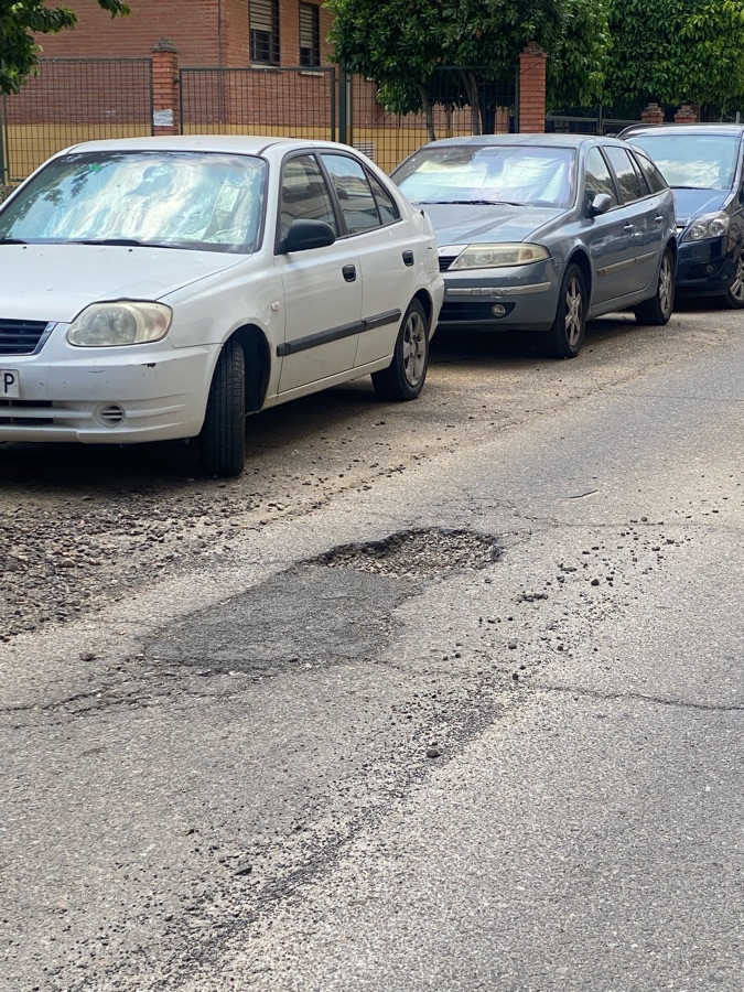 Bache profundo en la calle Juan Labrado, entre los números 3 y 7. Se ha hecho más profundo en los últimos meses a causa de las constantes lluvias