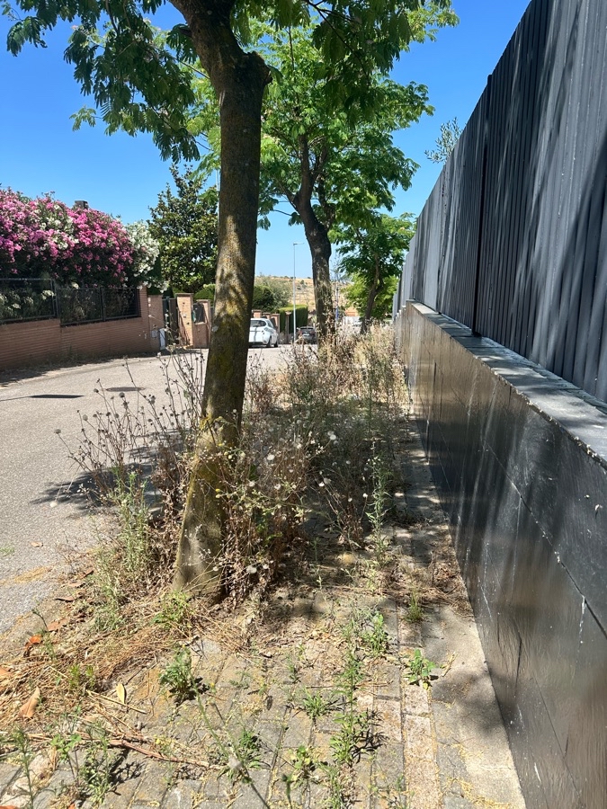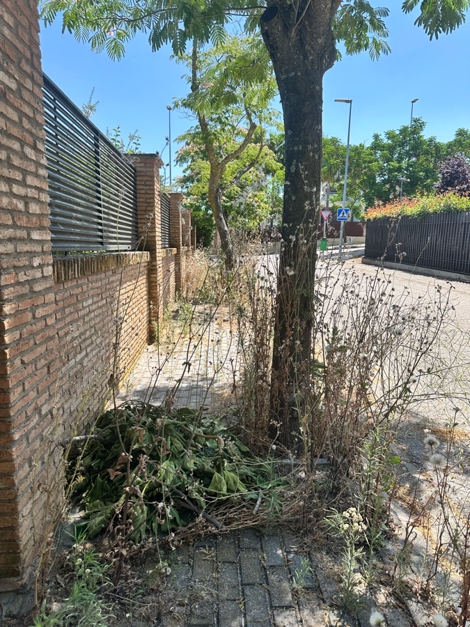 La vegetación ocupa totalmente l acera impidiendo el paso a los viandantes.