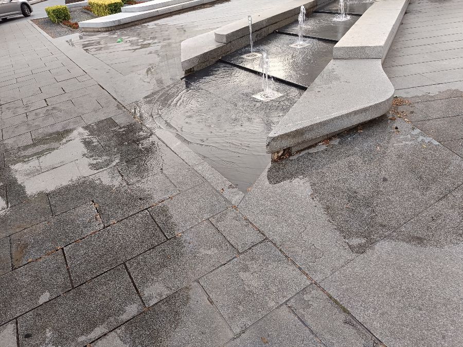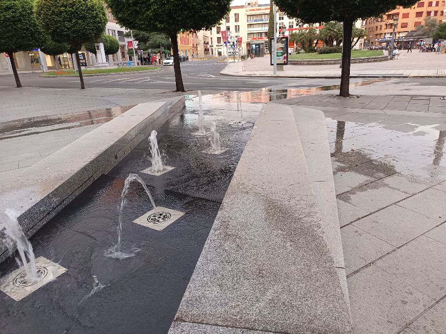 La fuente de la Plaza Minayo está desbordada llenando de agua la acera y la carretera. Además, la fuente presenta varios chorros torcidos, y defectos en la iluminación RGB (algunos focos fundidos completamente, y otros parcialmente). Solicito su reparación, muchas gracias.
