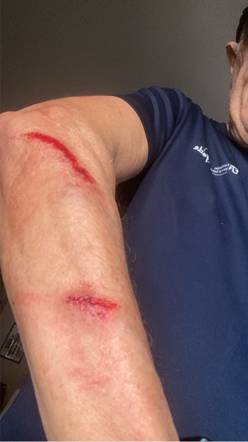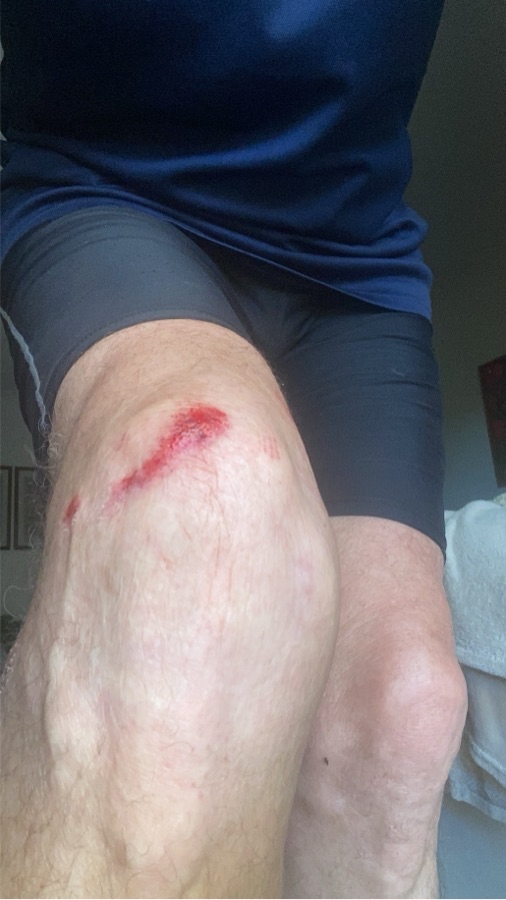 Caminando por esa calle he tropezado con el pavimento levantado sufriendo heridas en rodilla y parte posterior de antebrazo izquierdo. Se adjuntas fotos
