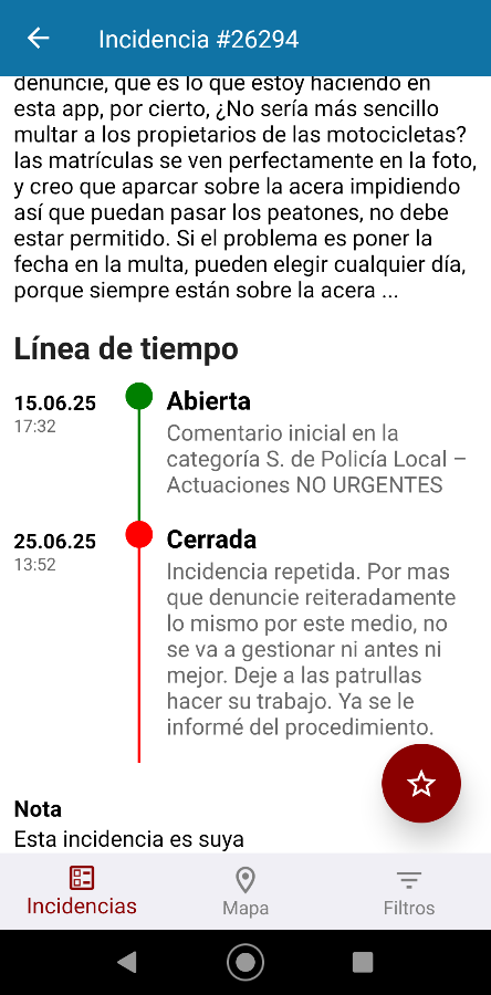 La policía municipal, no sólo no agradece la colaboración ciudadana sino que, a juzgar por su respuesta, prefieren que no me "inmiscuya" en su trabajo. Sugiero entonces que se excluya a la policía de esta app, y así el ciudadano no se sentirá "reñido" por este servicio de policía, que en teoría, se encuentran al "servicio" de los ciudadanos, que con sus impuestos pagan su sueldo. Como pueden apreciar, seguimos igual, ahora un coche.