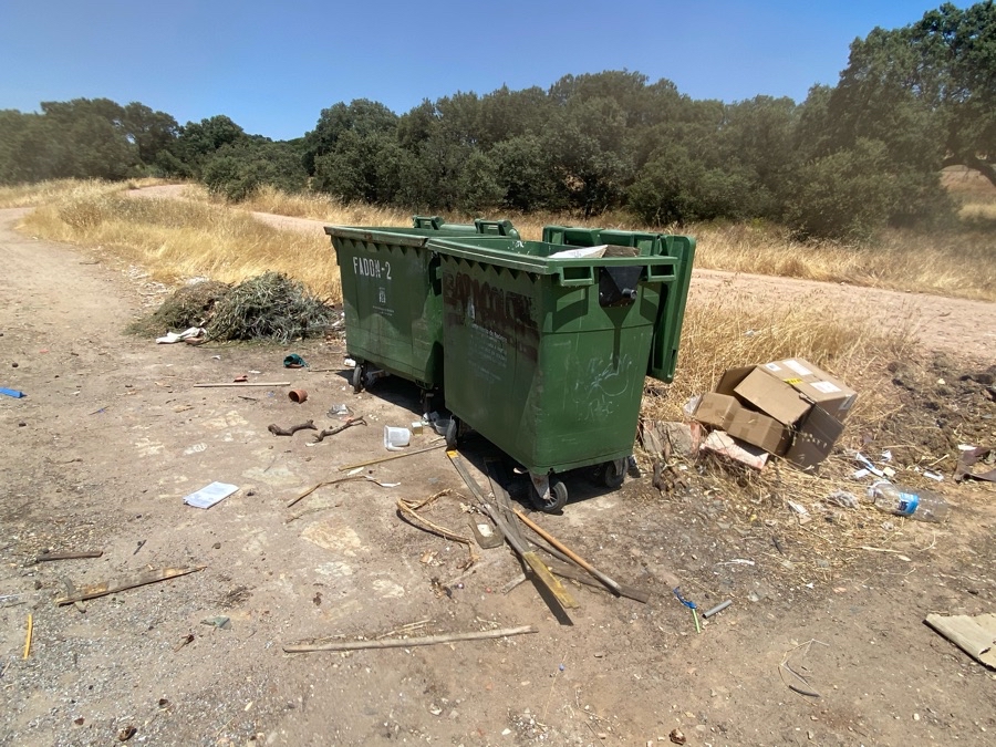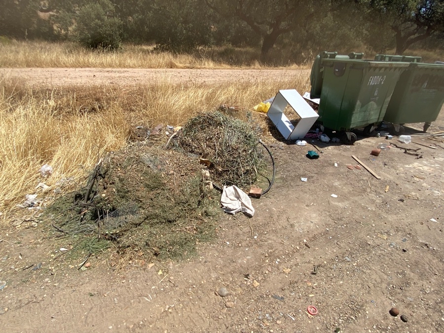 Restos de muebles de cocina, poda y basura fuera de contenedores en Parque Municipal Tres Arroyos km 5 camino de l derecha dirección La Corte de Peleas.