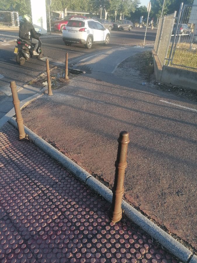 En la entrada al Hospital Universitario no hay paso de peatones al cruzar el carril bici. Es ZONA NO SEGURA!!. Pinten lo de una p***** vez. Habrá un accidente....