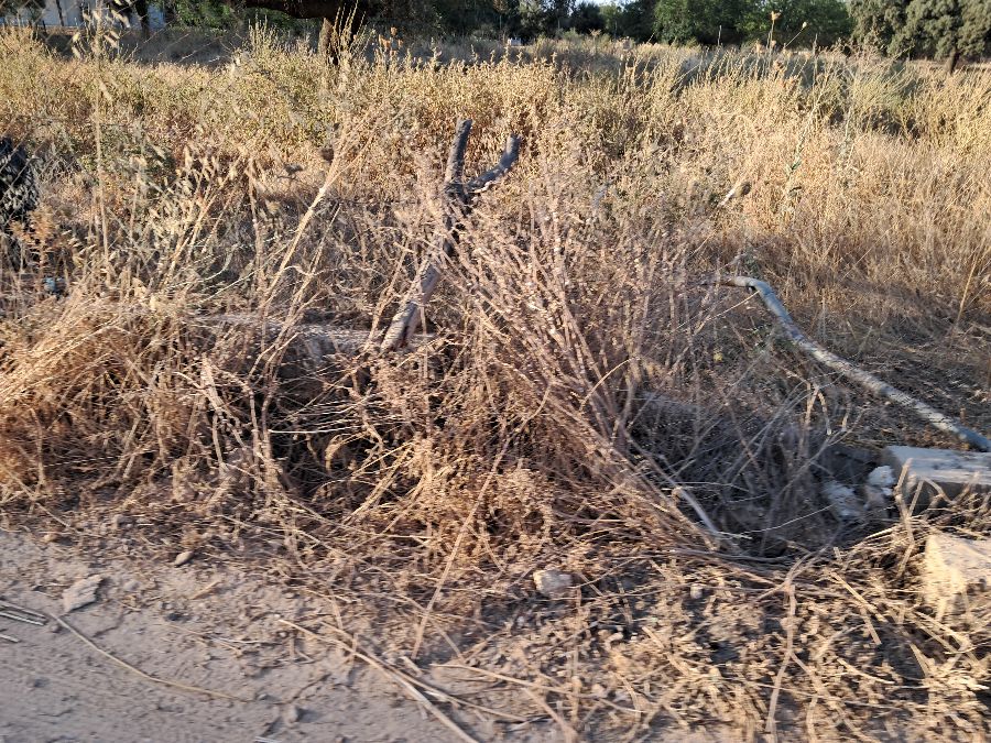 Terreno uso deportivo,propiedad municipal sin uso, lleno de pastos, la valla pegada al camino la han tirado al suelo y se han llevado las dos porterías de la pista deportiva