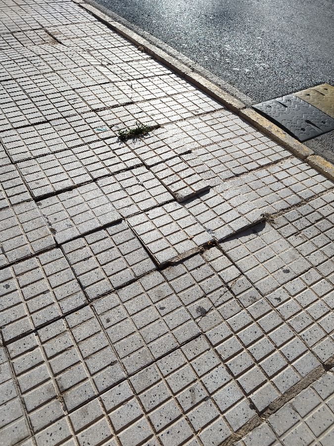 Hay un grupo de baldosines sueltos y desnivelados. Ya han provocado algunos tropezones y pueden provocar alguna caída más grave.