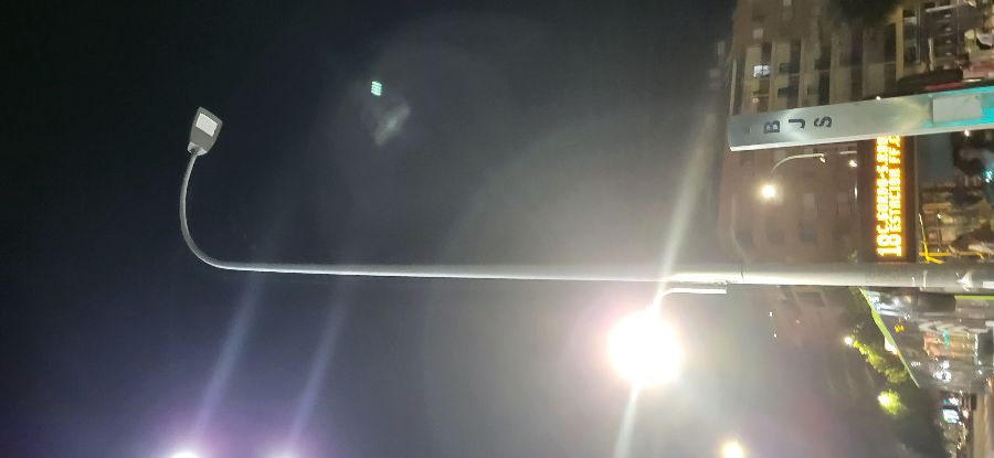 La farola esta fundida. Y la de enfrente justo a ella ilumina con menos intensidad que las demas.