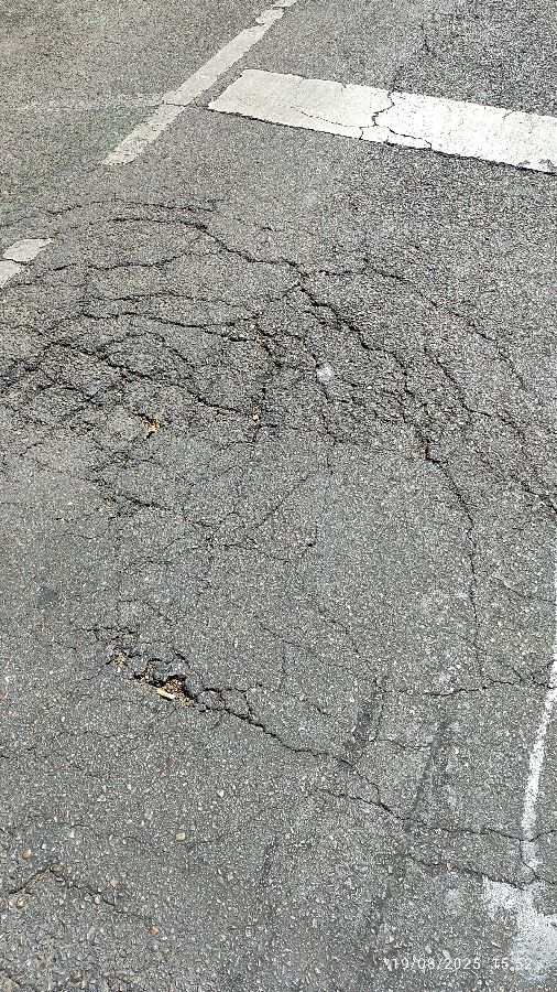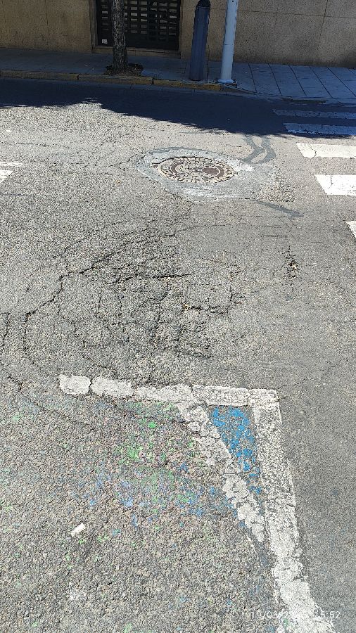 Hoy al pasar con la moto he estado a punto de irme al suelo por culpa de una zona de asfaltado en la vía que se está hundiendo frente al piso de peatones del hospital provincial. Por favor tomen medidas