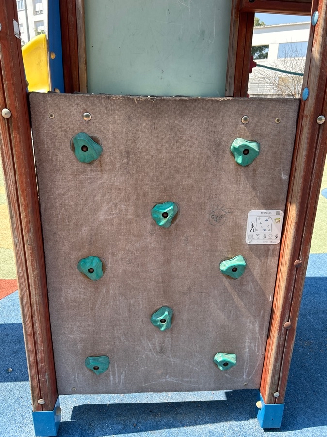 Las piezas de estas pared de escalada están flojas y son peligrosas para los niños. Habría que apretarlas para que estén rígidas y puedan escalar sin peligro