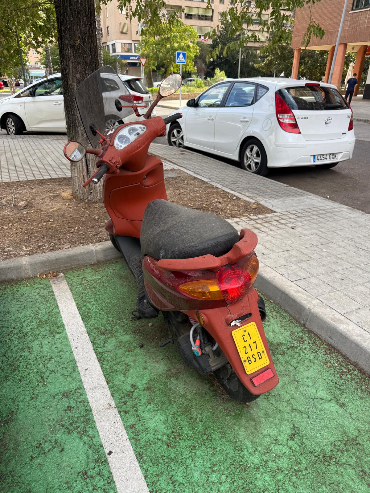 Estas motos llevan meses (solo hace falta verlas) aparcadas ahí. Teniendo en cuenta que hay tres plazas, si dos están ocupadas por vehículos que no se utilizan, impiden al resto de ciudadanos usarlas. Avenida Sinforiano Madroñero, aparcamiento de la notaría (frente a los números 25 y 23)