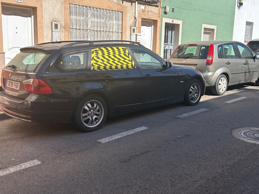 Vehículo que lleva 6 meses en ese mismo sitio y tiene los cristales rotos y ruedas desinfladas. Signo claros de abandono.