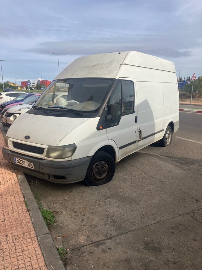 Vehículo abandonado, con las cuatro ruedas pinchadas.