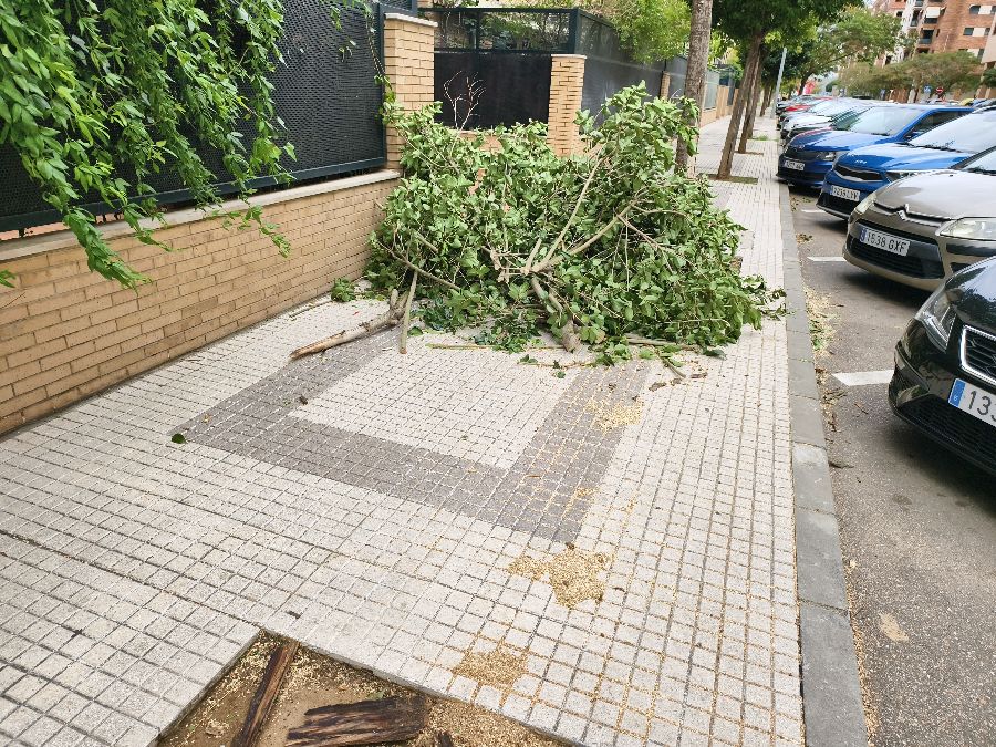 • Buenos días, El Servicio Municipal de Limpieza le informa que se ha procedido a derivar su solicitud al Servicio de Parques y Jardines para su gestión. Agradeciendo su colaboración, reciba un cordial saludo El Servicio Municipal de Limpieza