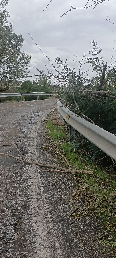 En todo el tramo del camino, hay verdaderos lagos de agua, que impiden el paso de viandantes, además ahora con el temporal, justo a la altura de la alameda de eucaliptos, se ha caído uno y tiene el camino cortado al paso de vehículos y peatones. En el puente de la antigua venta san Gabriel, dirección los Montitos en la misma curva, hay unas ramas que invaden partes de la carretera, obligando a los conductores a invadir la parte izquierda de la calzada, con el peligro que conlleva dicha maniobra, aparte, de los vehículos que se están arañando. Les dejo varias fotos de los distintos sucesos.